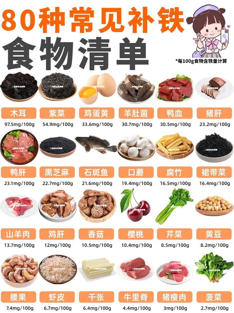 - 奶制品:其中的钙会与铁竞争吸收通道,不要用牛奶送服铁剂或与高铁食物同食。