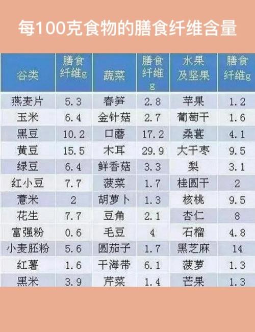 - 循序渐进:如果你平时吃纤维较少,突然大量增加摄入可能会引起腹胀、胀气等不适,建议逐渐增加纤维的摄入量,并确保同时喝足够的水(每天1.5-2升),因为纤维需要水分才能膨胀,发挥其作用。