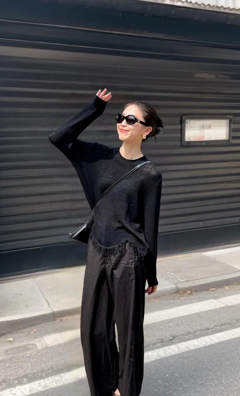 - 上深下浅:用深色上衣(如黑色、宝蓝色)衬托脸白,浅色裤子(如白色、米色)拉长腿部线条,非常适合个子不高的女生。