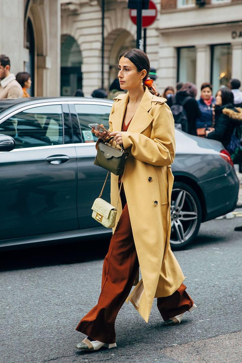 如果你不敢大面积穿亮色,可以从配饰开始,一身黑白灰的基础搭配,用一条红色丝巾、一个黄色的包包或一双亮色的鞋子来点缀,同样能达到提亮气色的效果。
