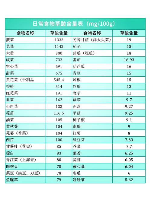 以下是一些草酸含量较高的食物,可以分为几大类: