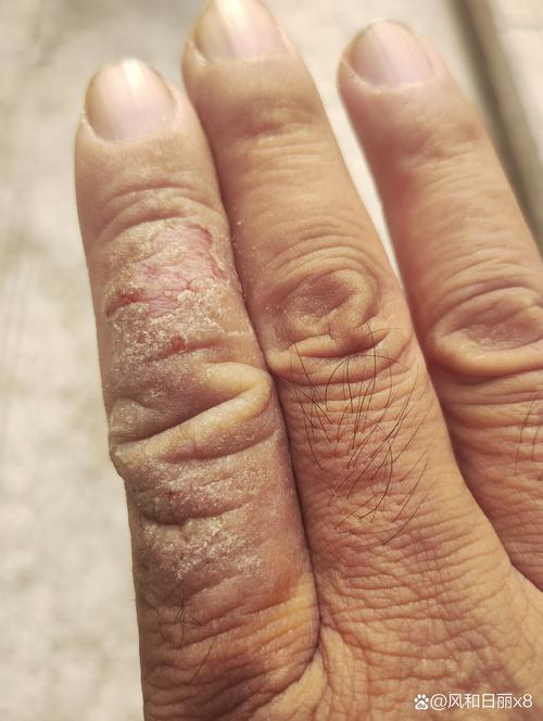 - 手癣:由真菌感染引起,通常是一只手先发病,表现为皮肤增厚、脱屑、瘙痒,严重时也会开裂,与湿疹不同,手癣通常在夏季加重,且具有传染性。