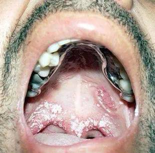 - 溃疡数量多,遍布口腔,甚至出现在喉咙、食道。