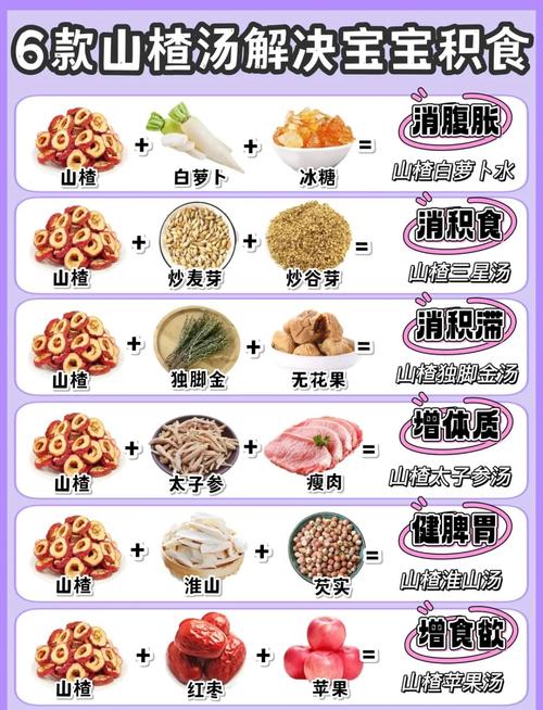- 山楂水:山楂是消食化积的“明星”食材,尤其擅长消除肉食积滞,可以取几片干山楂,用开水冲泡代茶饮,但注意,胃酸过多的人不宜多喝。