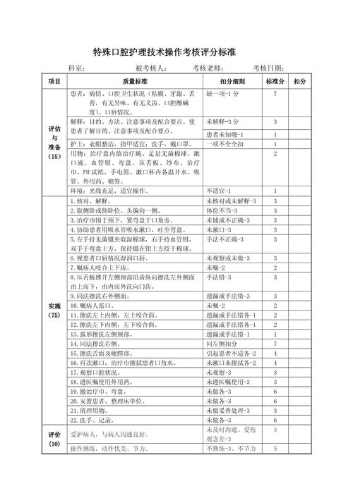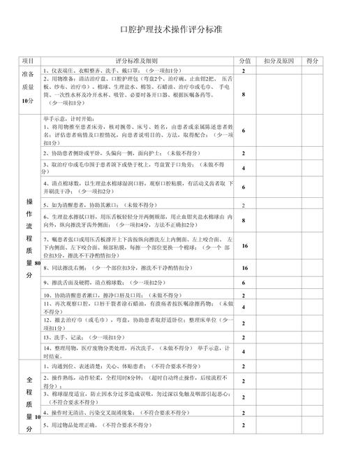 本文将作为您的口腔护理操作流程及评分标准全攻略,从基础到进阶,从个人护理到专业评估,为您提供一份详尽、权威的指南,无论您是希望提升自我口腔护理质量的普通人,还是寻求专业参考的医护人员,都能在这里找到您需要的内容。