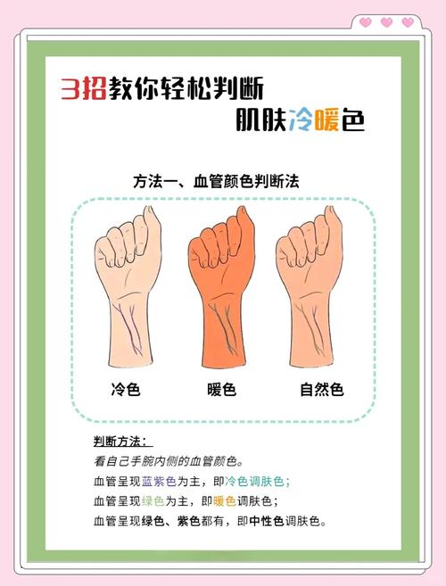 - 找到观察点:抬起你的手腕,在自然光(最好是窗边)下观察你手腕内侧的血管颜色。