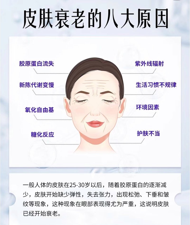 - 伤害:紫外线会直接损伤皮肤中的胶原蛋白和弹性纤维,导致皮肤松弛、长皱纹、肤色不均、长斑。