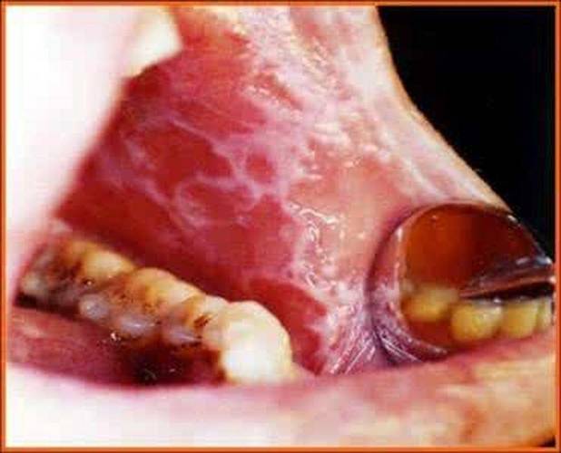 口腔黏膜发白(OSF)的图片示意