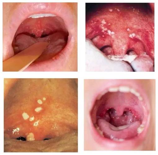 | 好发部位 | 口腔内:嘴唇内侧、脸颊内侧、牙龈、舌腹、软腭等。 | 咽峡部:悬雍垂(小舌头)、扁桃体、咽腭弓、舌腭弓等咽喉交界处。 |