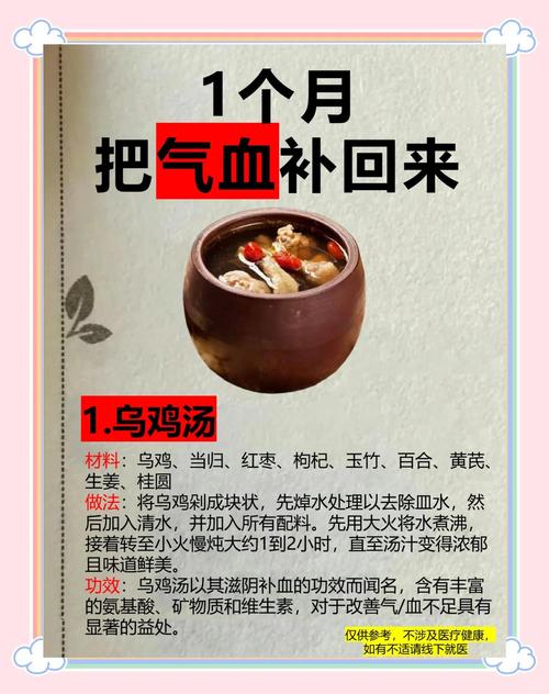 - 因人而异: 如果你气血亏虚的症状比较严重,或者不确定自己的体质,建议咨询专业的中医师,进行个性化调理,不要盲目进补。
