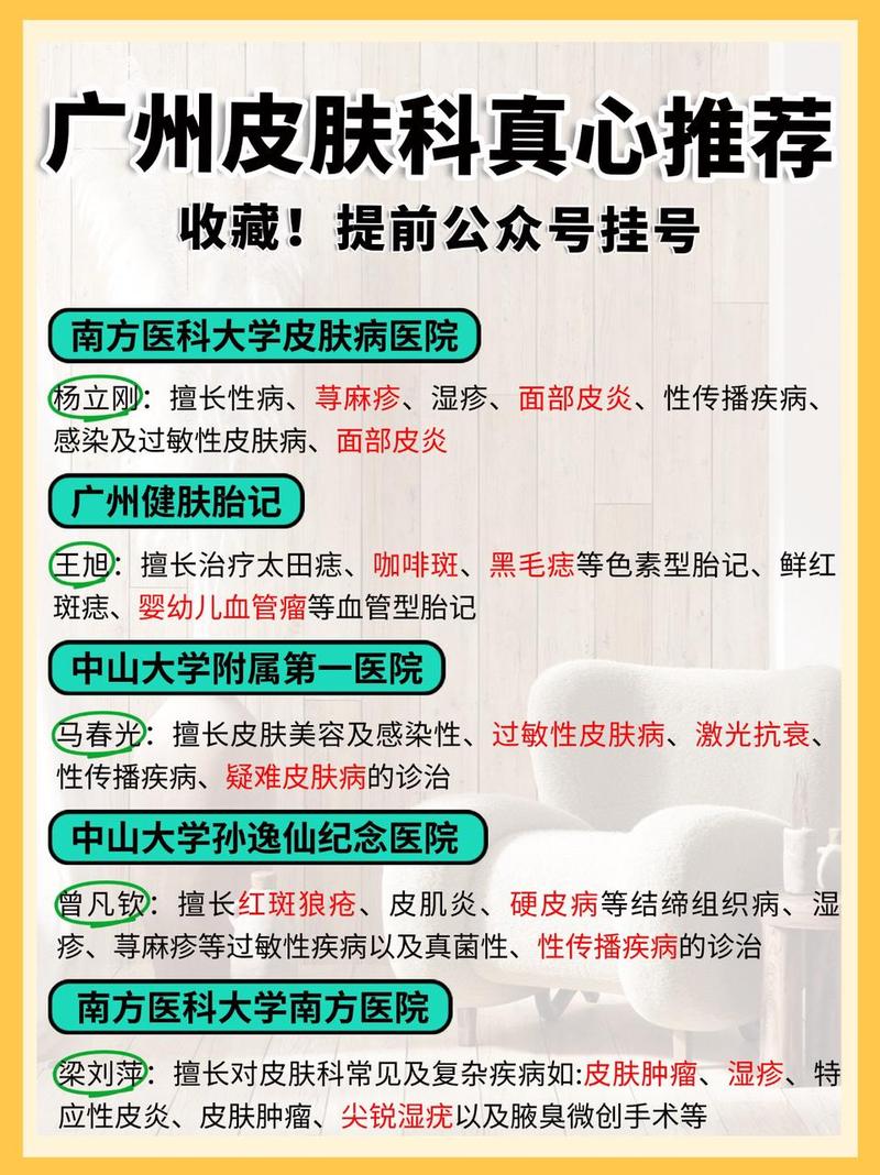 - 常见病(痤疮、脱发、荨麻疹、真菌感染等):可以选择 广东省人民医院、南方医院、中山一院 的普通门诊或主治医生,性价比高,医保可报销。