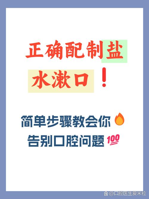 - 最终步骤:漱口后,用清水再漱一次口,然后吐干净。盐水漱口应作为日常口腔护理的补充,而不是替代品。