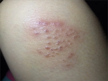 - 外观描述: 身体一侧(通常是躯干或面部)出现成簇的水疱,沿着神经带状分布,在水疱出现之前,该区域常有灼烧、刺痛或瘙痒感。