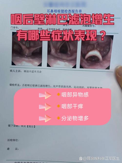 - 自我观察:您可以对着镜子,张大嘴巴,用压舌板轻轻压住舌头,观察咽后壁是否有上述描述的“颗粒状”或“鹅卵石样”改变。