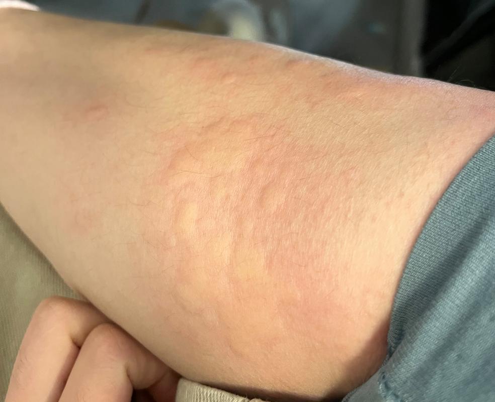 - 划痕症:用手抓挠或物体划过皮肤后,出现一道道的风团。