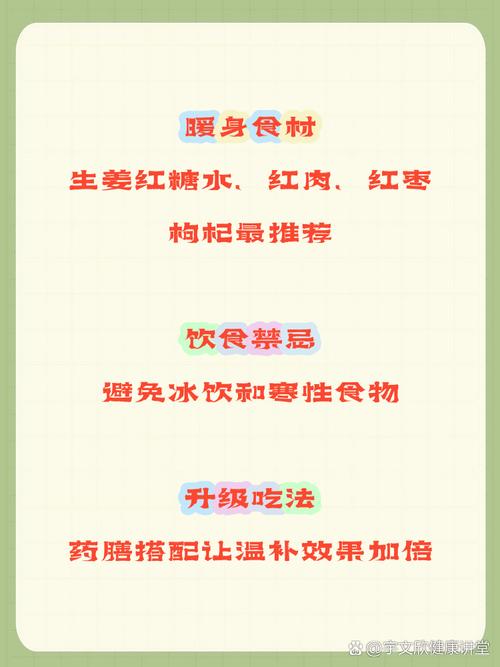 - 注意保暖: 尤其是手脚和腰腹部的保暖,出门戴手套,睡前用热水泡脚。