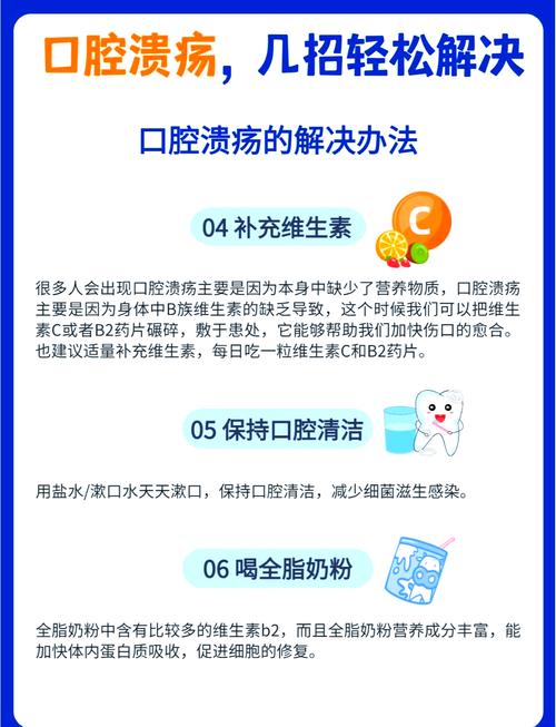 - 月子期间,身体正在恢复,而口腔溃疡的愈合与免疫力密切相关。充足的睡眠和休息是最好的“良药”,尽量让家人分担照顾宝宝的任务,争取更多的休息时间。