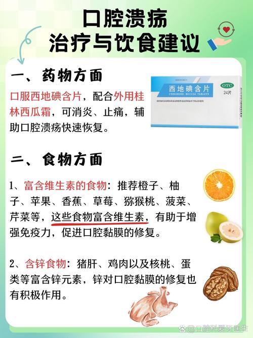- 注意: 口腔溃疡期间,建议选择不太酸的水果,或者榨汁后饮用,避免直接刺激溃疡面。