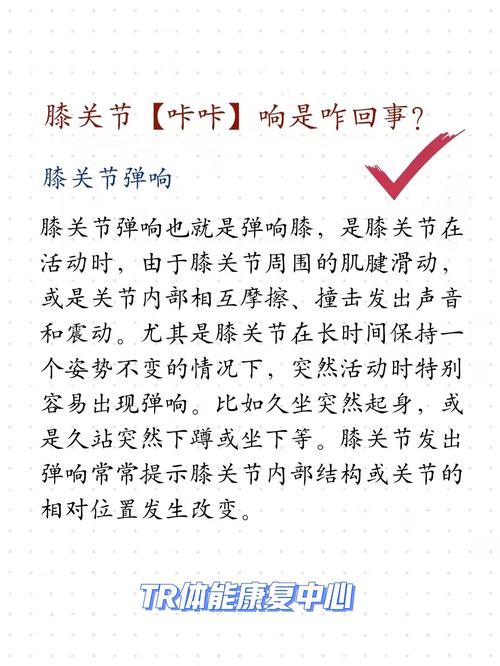 - 关节盘移位:关节内的软骨盘(关节盘)位置发生变化,导致活动时产生弹响或杂音,这是弹响的直接机械原因。