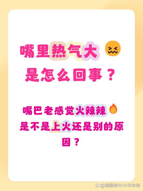 对付“口腔热气大上火”,短期靠多喝水、盐水漱口、用西瓜霜;长期靠管住嘴(多吃凉性蔬果)、迈开腿(适度运动)、睡好觉(别熬夜)、心态好(别生气)。