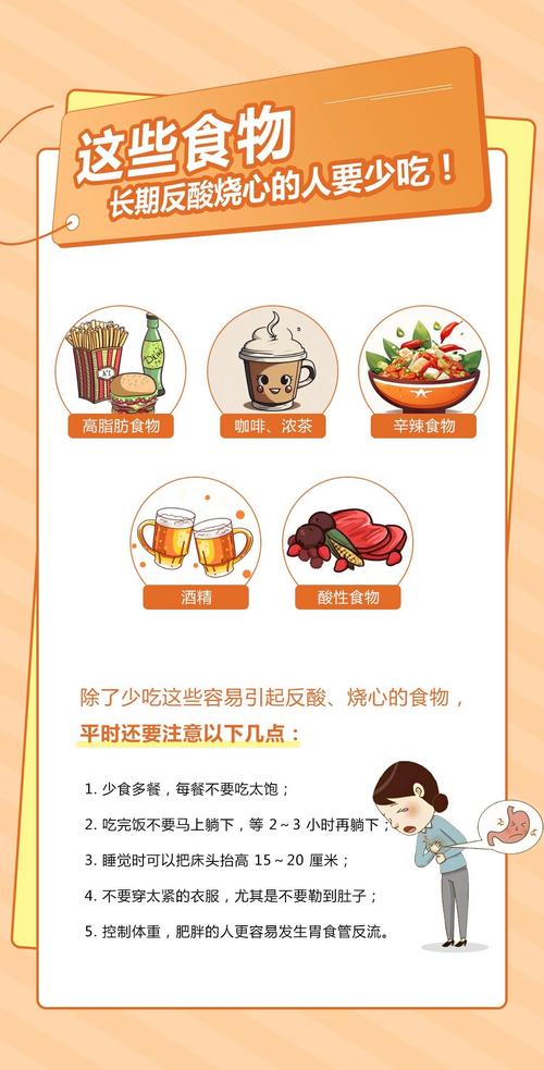 - 饭后姿势: 餐后不要立即躺下或弯腰,最好保持直立或慢走至少30分钟,夜间睡觉时可以适当垫高枕头(15-20厘米),利用重力防止反流。