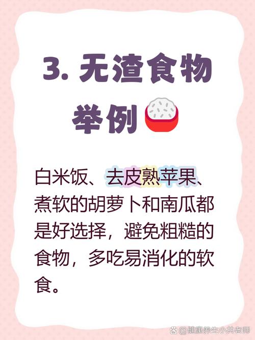 - 为某些医疗检查做准备:在进行肠道内窥镜检查(如肠镜)或腹部手术前,需要完全排空肠道,所以需要食用无渣食物。