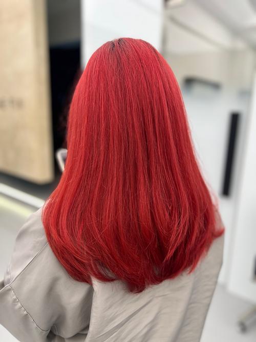 - 正红色/中国红:气场全开,白皮染上正红色,会非常亮眼、吸睛,白得发光。