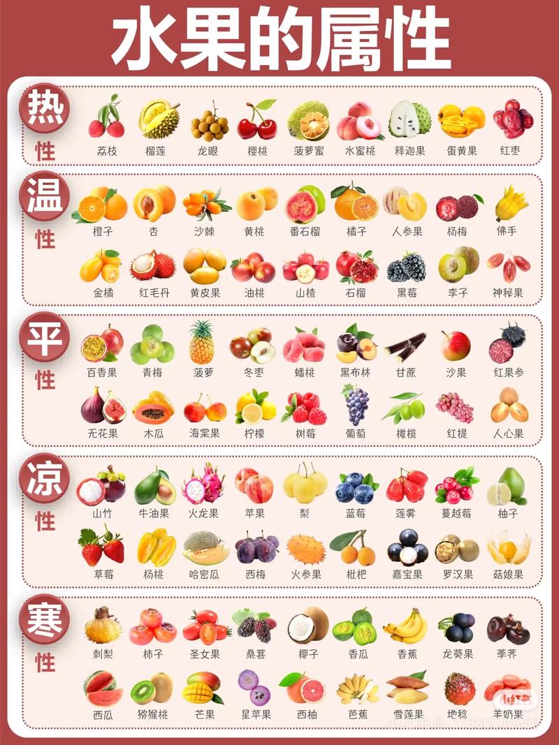 - 草莓:清热凉血、健脾解酒,性质偏凉。