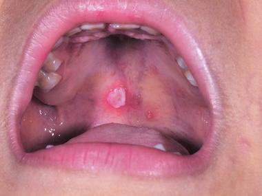 - 疱疹和溃疡主要集中在喉咙后部(咽峡部)、软腭、悬雍垂。