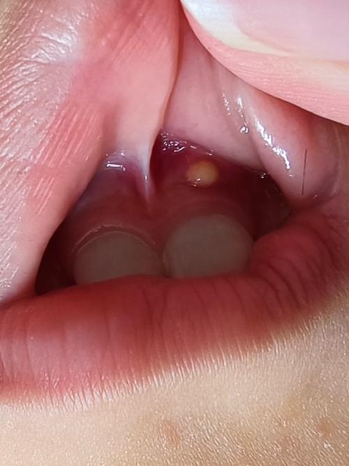 - 症状:在受伤部位出现单个、边界清晰的溃疡,表面有白色假膜,周围轻微红肿,孩子会指出疼痛的部位。
