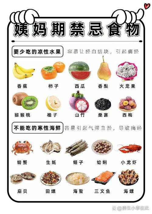 | 生冷寒凉 | 冰饮、冰水果、西瓜、梨、苦瓜 | 刺激血管收缩,导致经血不畅、痛经 |