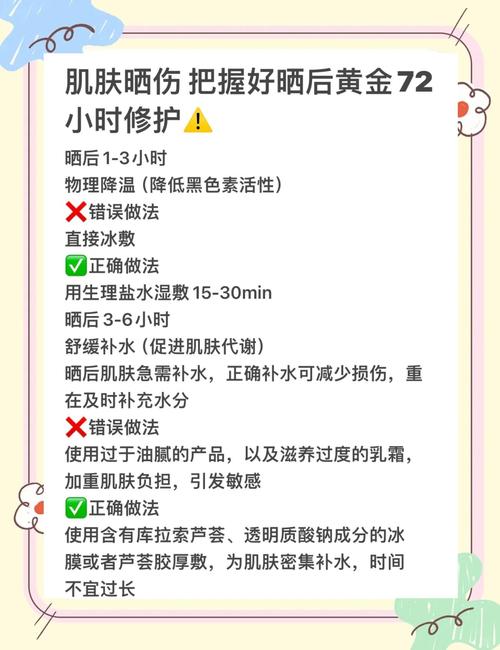 下面我将为你提供一个“黄金72小时”的详细修复攻略,从紧急处理到长期养护,帮你全面应对日晒后的皮肤问题。