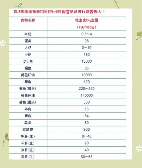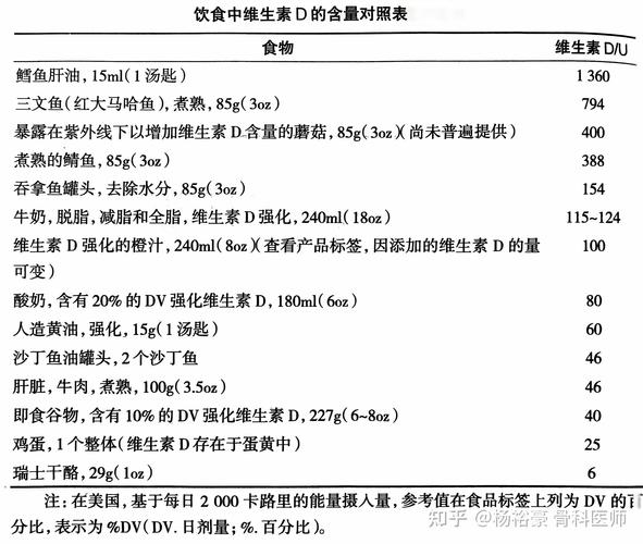 - 不要过量:维生素D是脂溶性维生素,过量摄入会在体内积聚,导致中毒(高钙血症),引起恶心、肾结石等问题,成年人每日推荐摄入量(RDA)约为600-800 IU,可耐受最高摄入量(UL)为4000 IU。