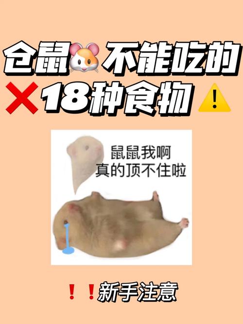 | 其他 | 人类零食 (薯片、饼干、糖果)、糖果/口香糖、咖啡/茶、辛辣食物 (辣椒、洋葱等)、冰的食物 | 人类零食:高油、高盐、高糖,含有各种添加剂,对仓鼠是“垃圾食品”。 咖啡/茶:含有咖啡因,会过度兴奋心脏和神经。 辛辣食物:强烈刺激肠胃。 冰的食物:会刺激肠胃,引起腹泻。 |