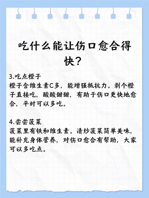 - 保证充足饮水:水是所有生理活动的基础,充足的水分有助于新陈代谢和毒素排出,保持伤口清洁。